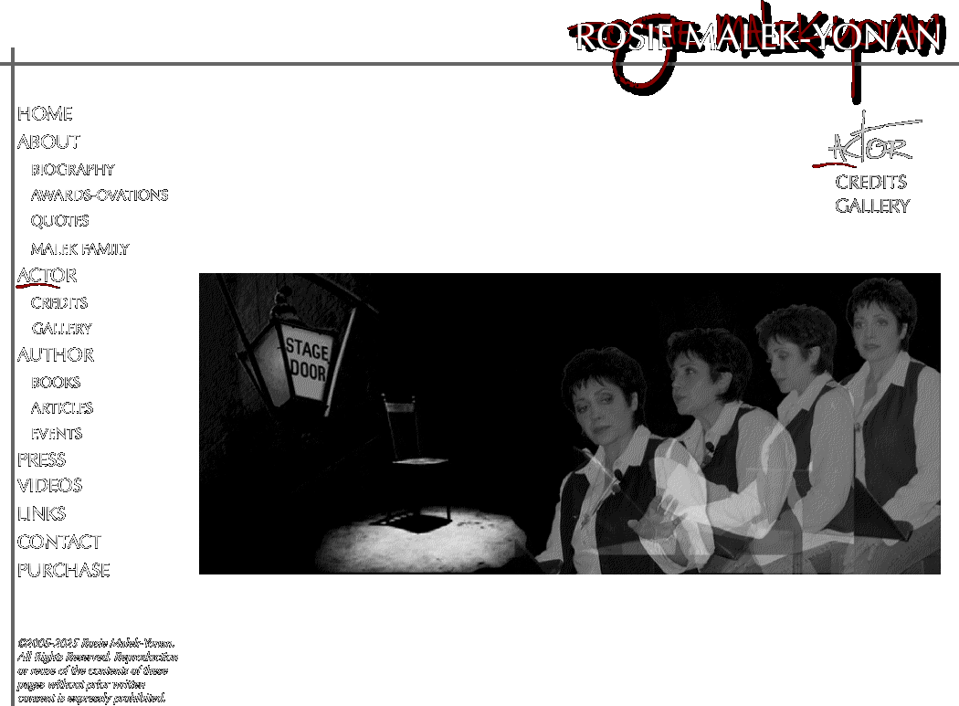 MALEK FAMILY QUOTES AWARDS-OVATIONS EVENTS BIOGRAPHY PRESS ARTICLES BOOKS GALLERY CREDITS PURCHASE HOME ACTOR LINKS CONTACT AUTHOR ABOUT VIDEOS GALLERY CREDITS