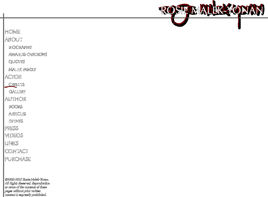 MALEK FAMILY QUOTES AWARDS-OVATIONS EVENTS BIOGRAPHY PRESS ARTICLES BOOKS GALLERY CREDITS PURCHASE HOME ACTOR LINKS CONTACT AUTHOR ABOUT VIDEOS