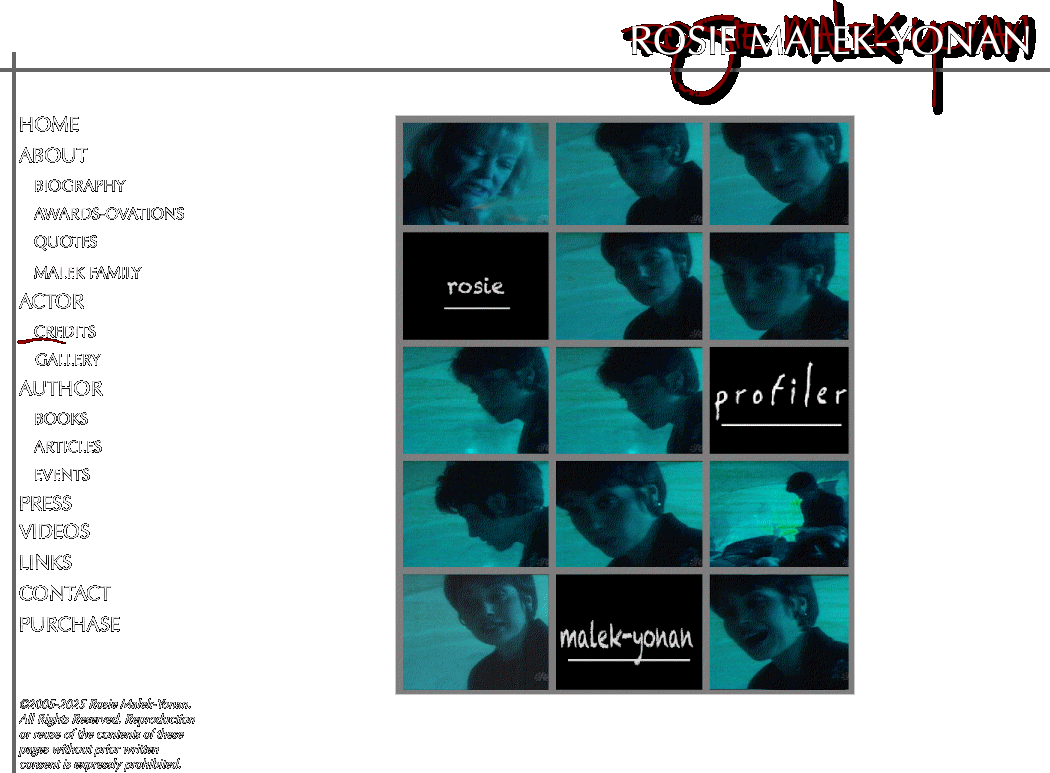 MALEK FAMILY QUOTES AWARDS-OVATIONS EVENTS BIOGRAPHY PRESS ARTICLES BOOKS GALLERY CREDITS PURCHASE HOME ACTOR LINKS CONTACT AUTHOR ABOUT VIDEOS