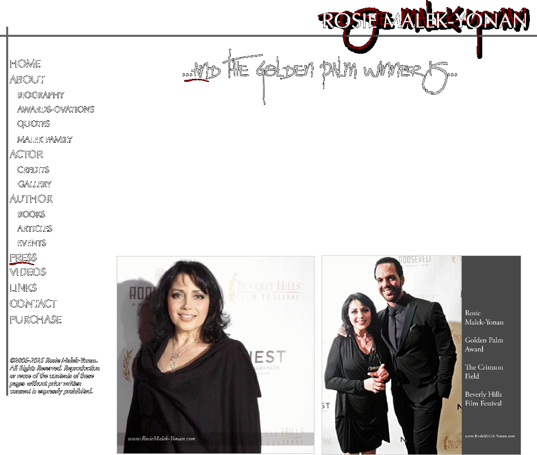 MALEK FAMILY QUOTES AWARDS-OVATIONS EVENTS BIOGRAPHY PRESS ARTICLES BOOKS GALLERY CREDITS PURCHASE HOME ACTOR LINKS CONTACT AUTHOR ABOUT VIDEOS