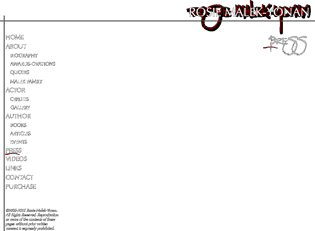 MALEK FAMILY QUOTES AWARDS-OVATIONS EVENTS BIOGRAPHY PRESS ARTICLES BOOKS GALLERY CREDITS PURCHASE HOME ACTOR LINKS CONTACT AUTHOR ABOUT VIDEOS